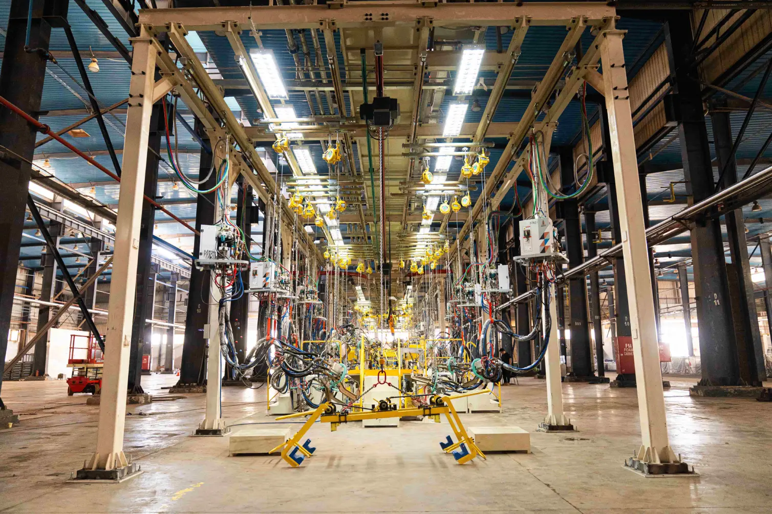 owner: Kasrawy automotive industry scope of work: welding line installation jetour model 1-installing steel structure 2- installing chiller pipes 3- installing fixative 4- installing compressor pipes 5- installing cable tray